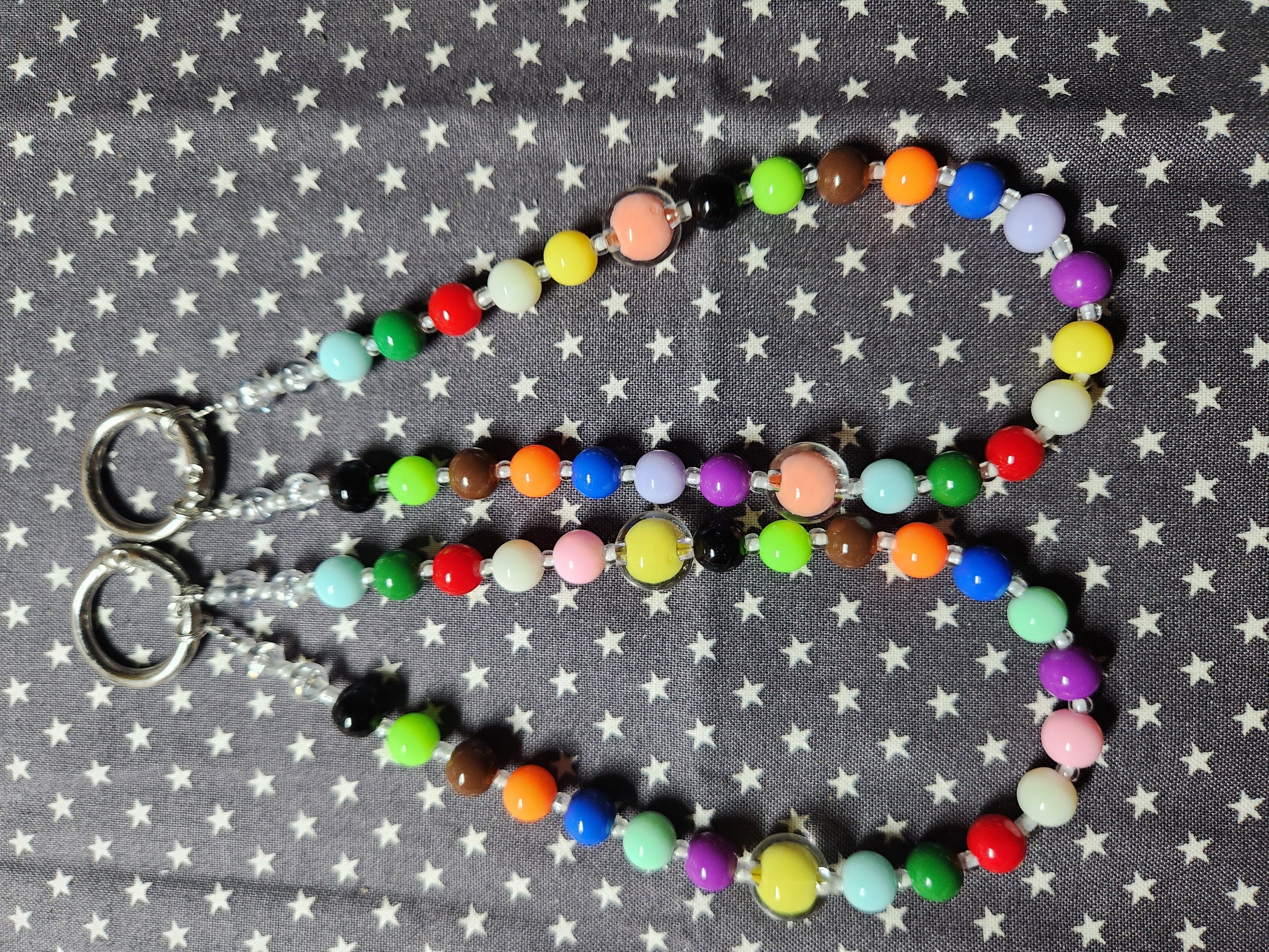 • 아크릴 비즈 vs 유리 비즈: 사진 속 메인으로 사용된 원색 비즈는 가벼운 아크릴 소재로, 장시간 휴대폰에 걸어도 손목에 무리가 가지 않습니다. 중간의 투명한 포인트 비즈는 빛 반사가 좋은 유리(Glass) 소재를 믹스하여 입체감을 살렸습니다.