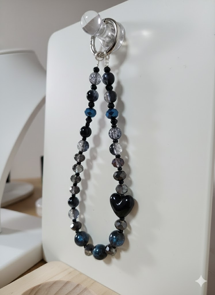 흔하지 않은 디자인의 블랙 하트 비즈 스트랩은 어떤 옷차림에도 잘 어울리는 만능 액세서리입니다. 직접 제작하며 느끼는 힐링과 완성 후의 성취감은 핸드메이드만의 매력이죠.