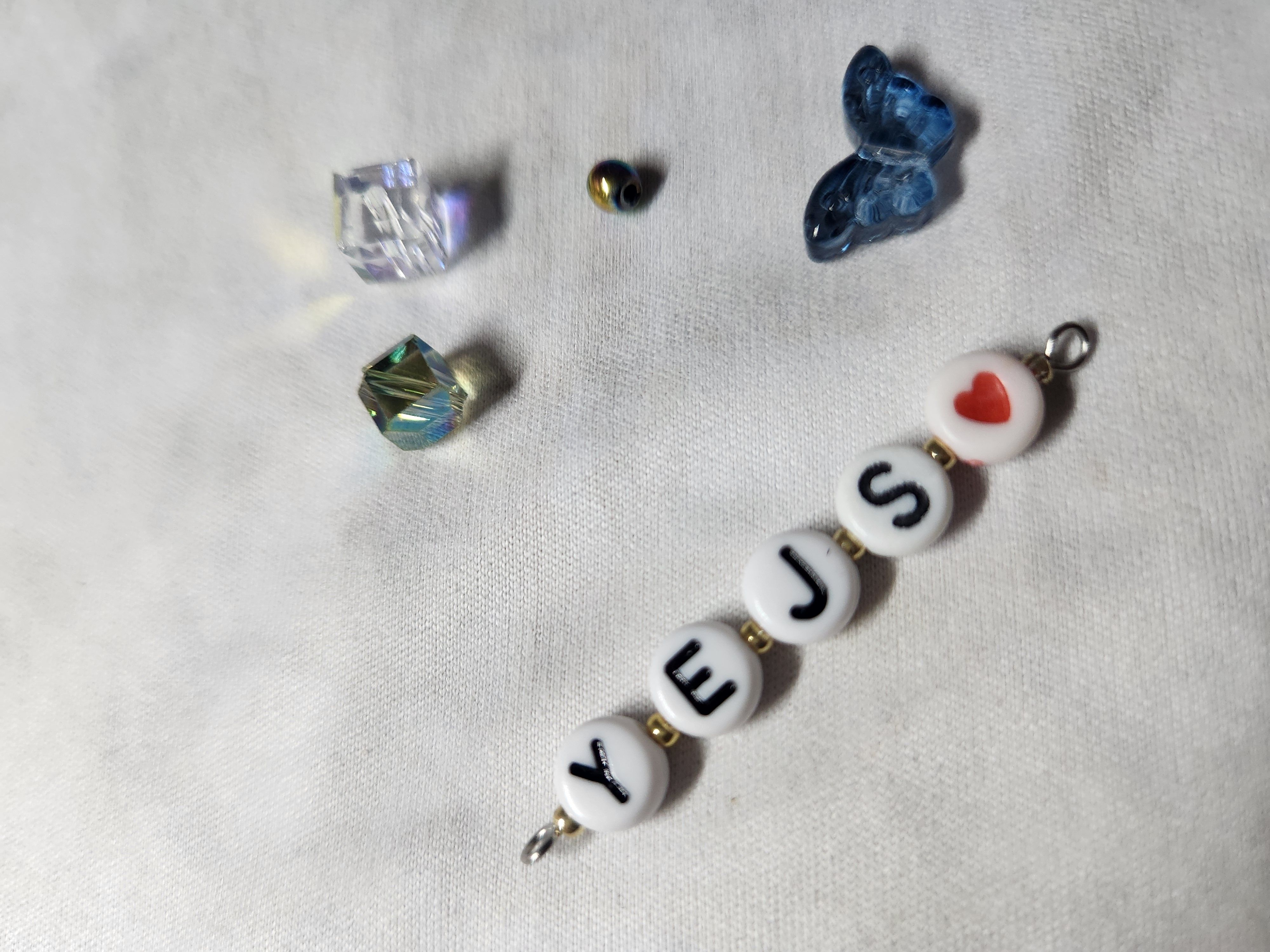 • 이니셜 비즈: Y, E, J, S 알파벳 비즈와 포인트용 하트 비즈