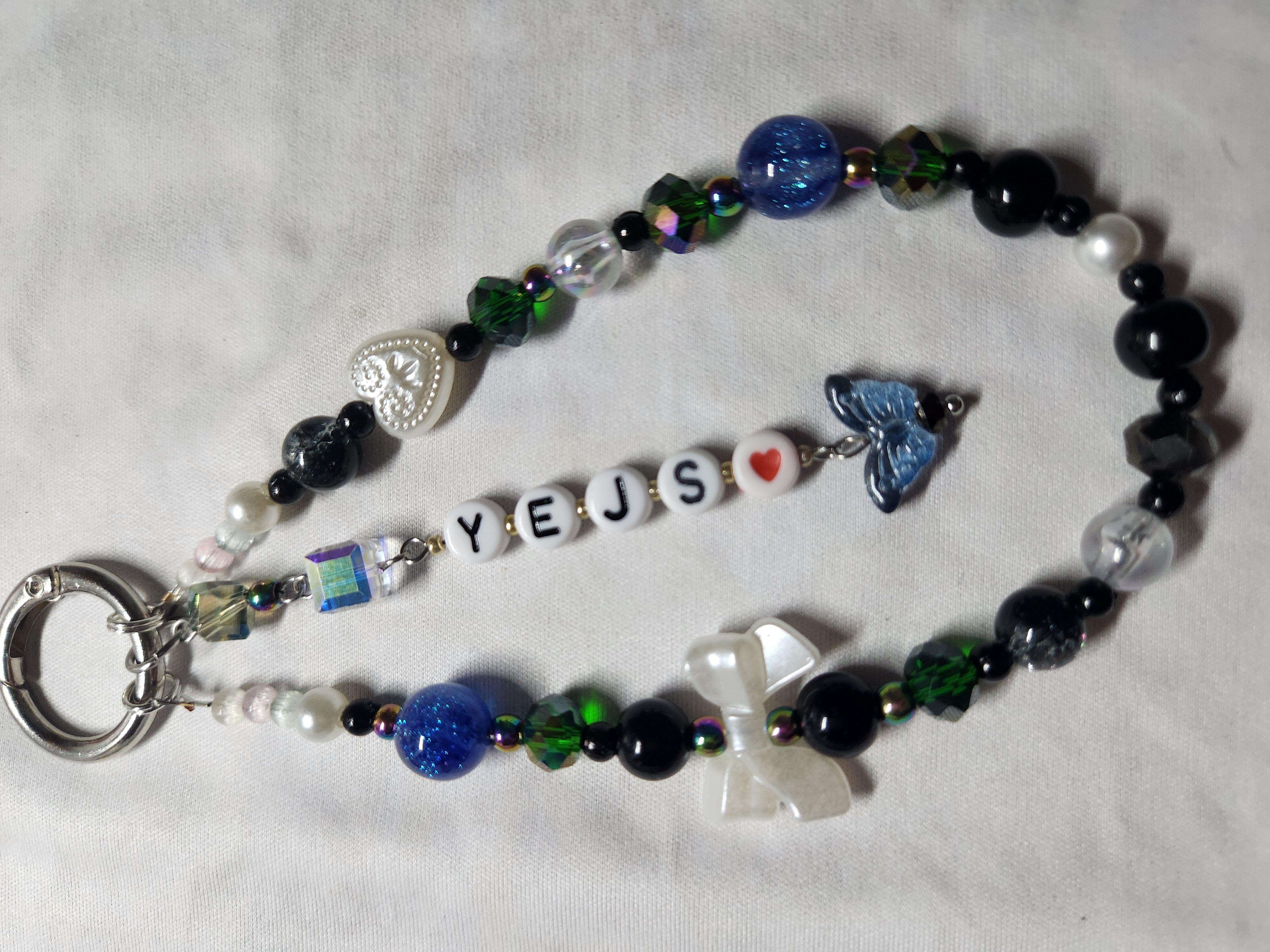 지금까지 ‘YEJS’ 이니셜과 푸른 나비 포인트가 매력적인 비즈 키링 제작 과정을 소개해 드렸습니다.