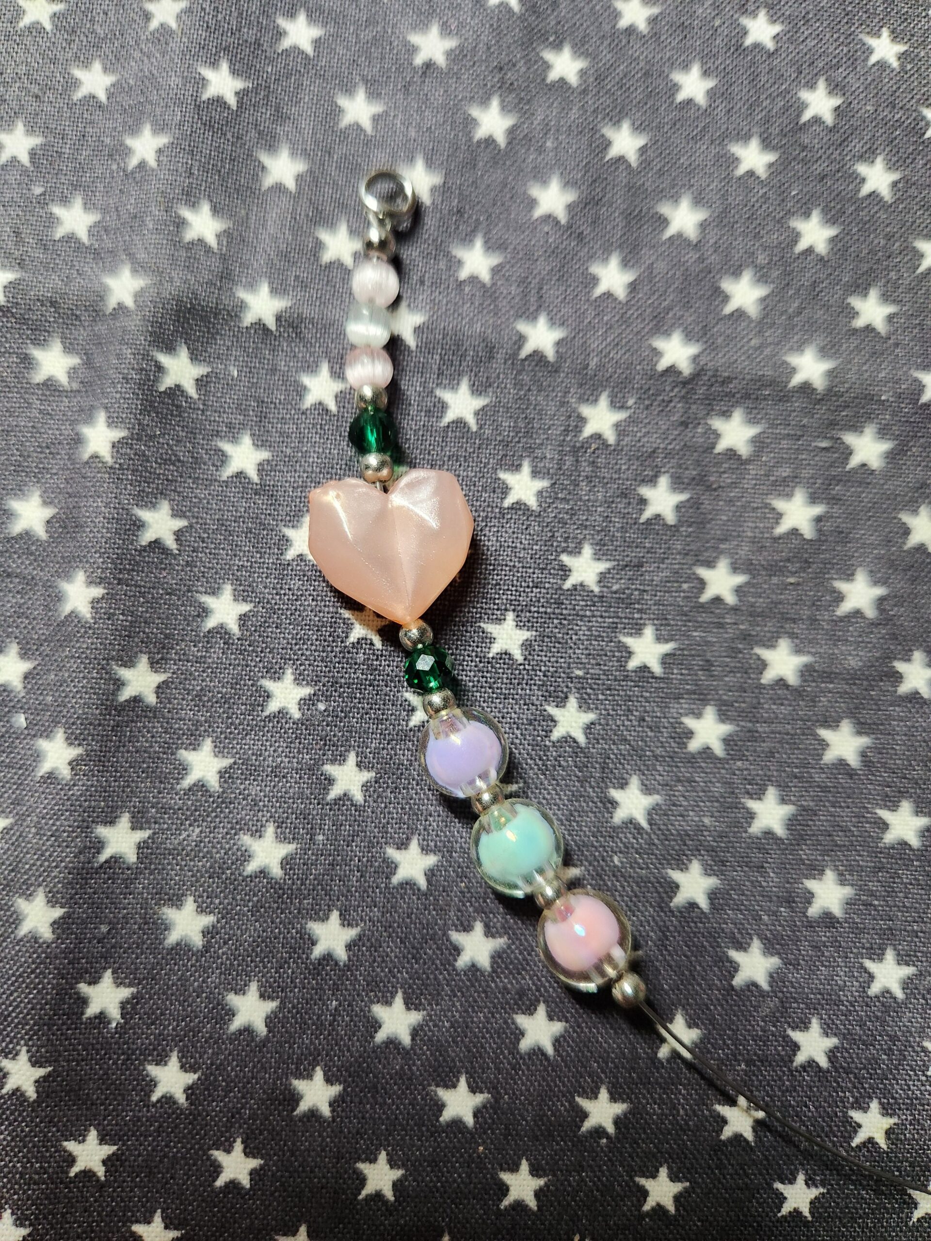• 메인 포인트: 입체감이 살아있는 대형 핑크 하트 비즈 1개, 투명한 블루 나비 비즈 1개