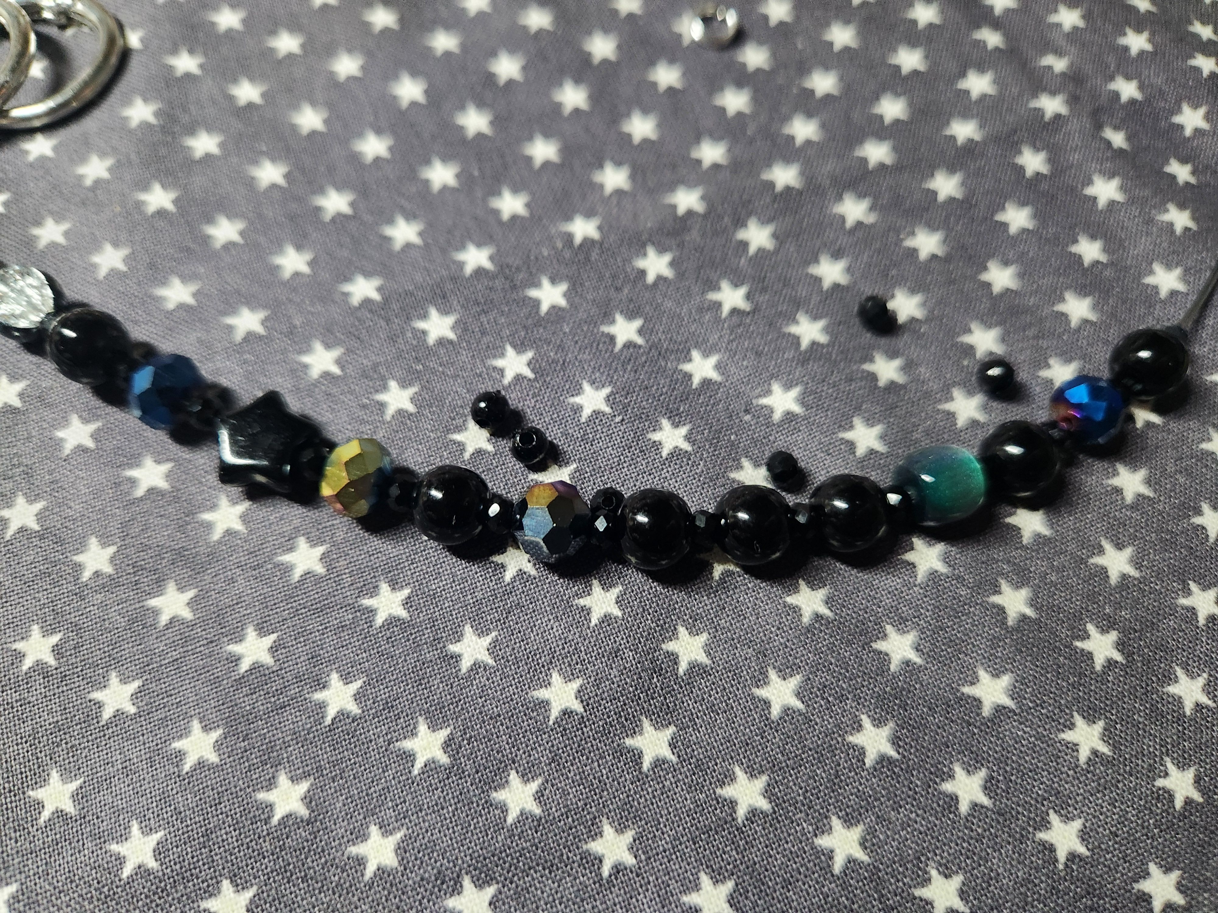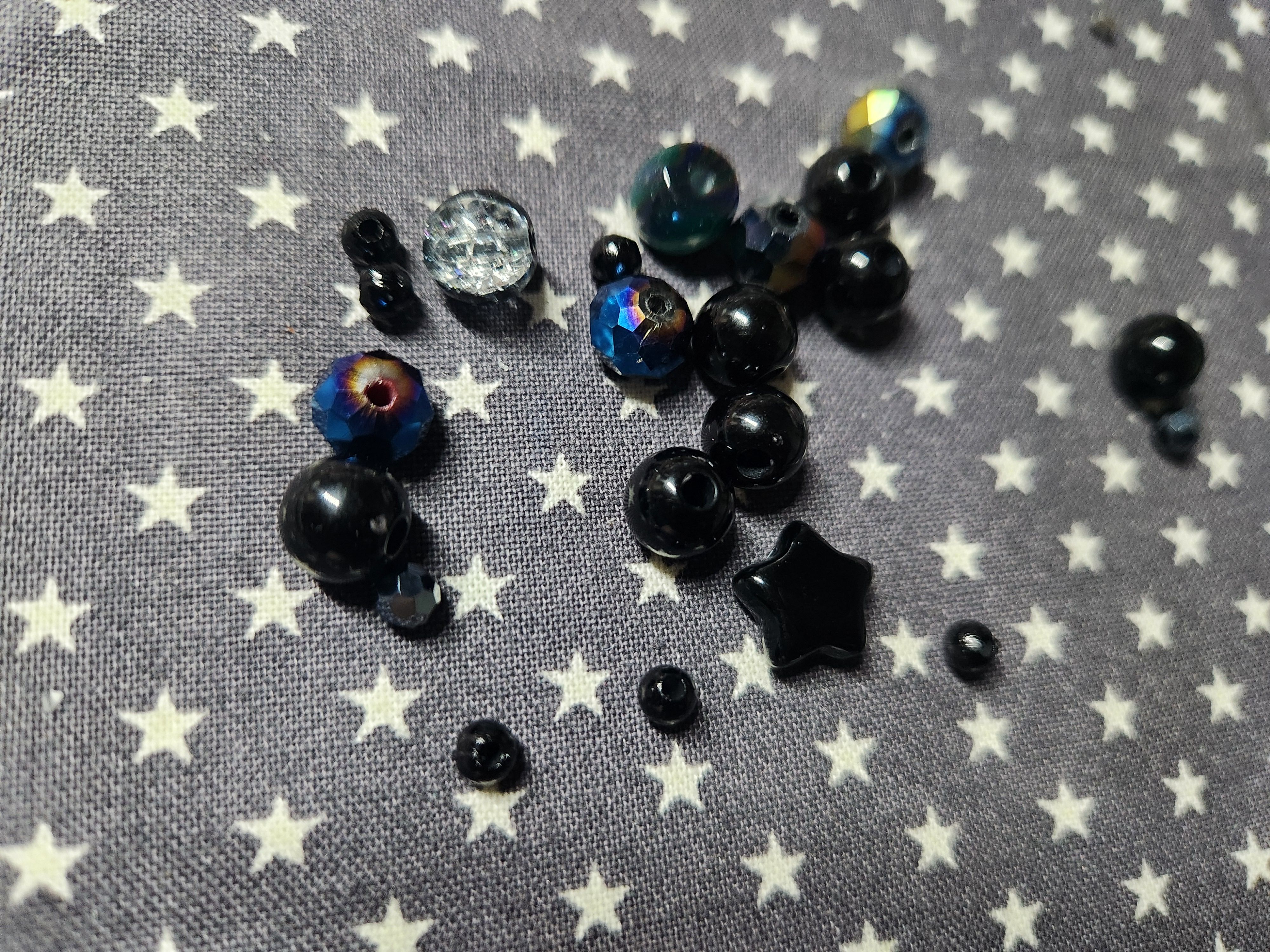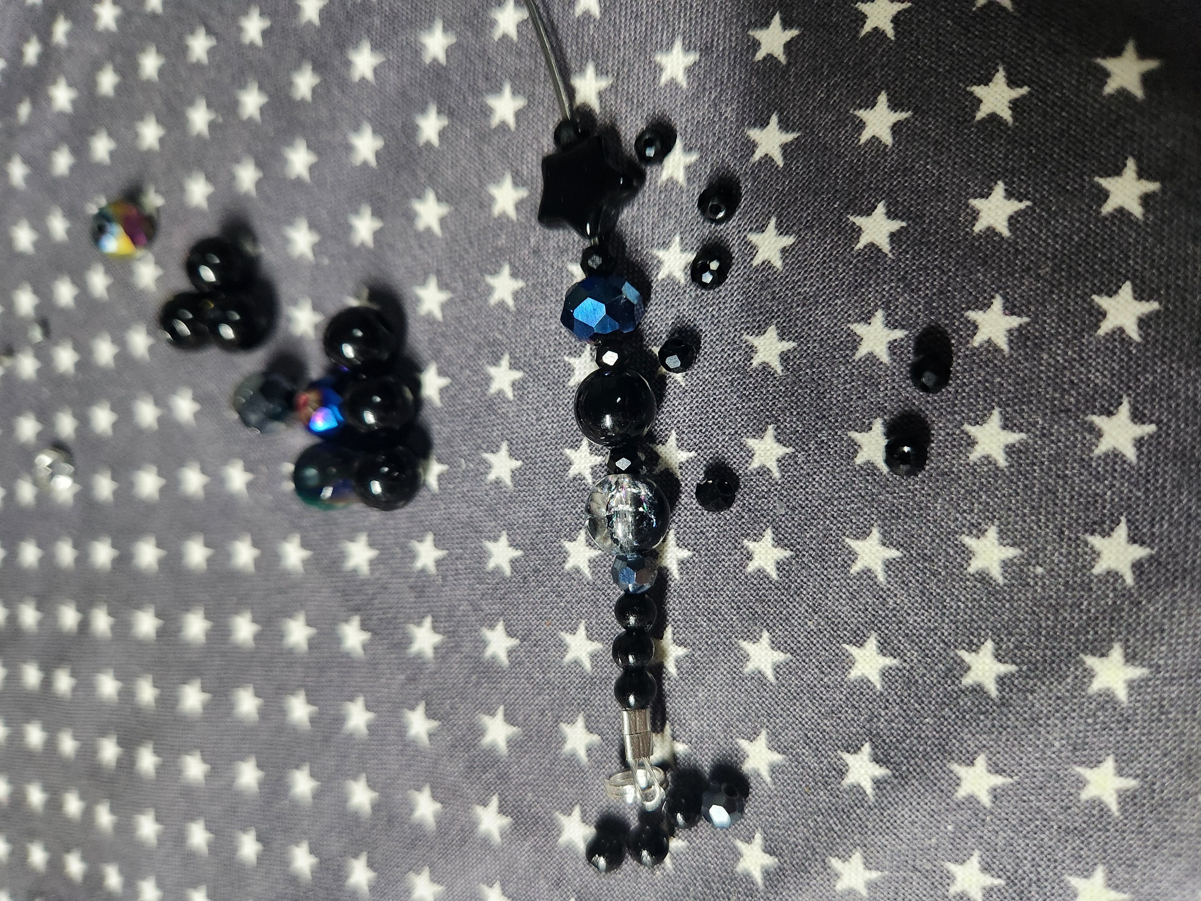 - 포인트 비즈: 중심이 되는 블랙 별 모양 비즈와 맑은 느낌을 주는 투명 크리스탈 비즈를 준비합니다.