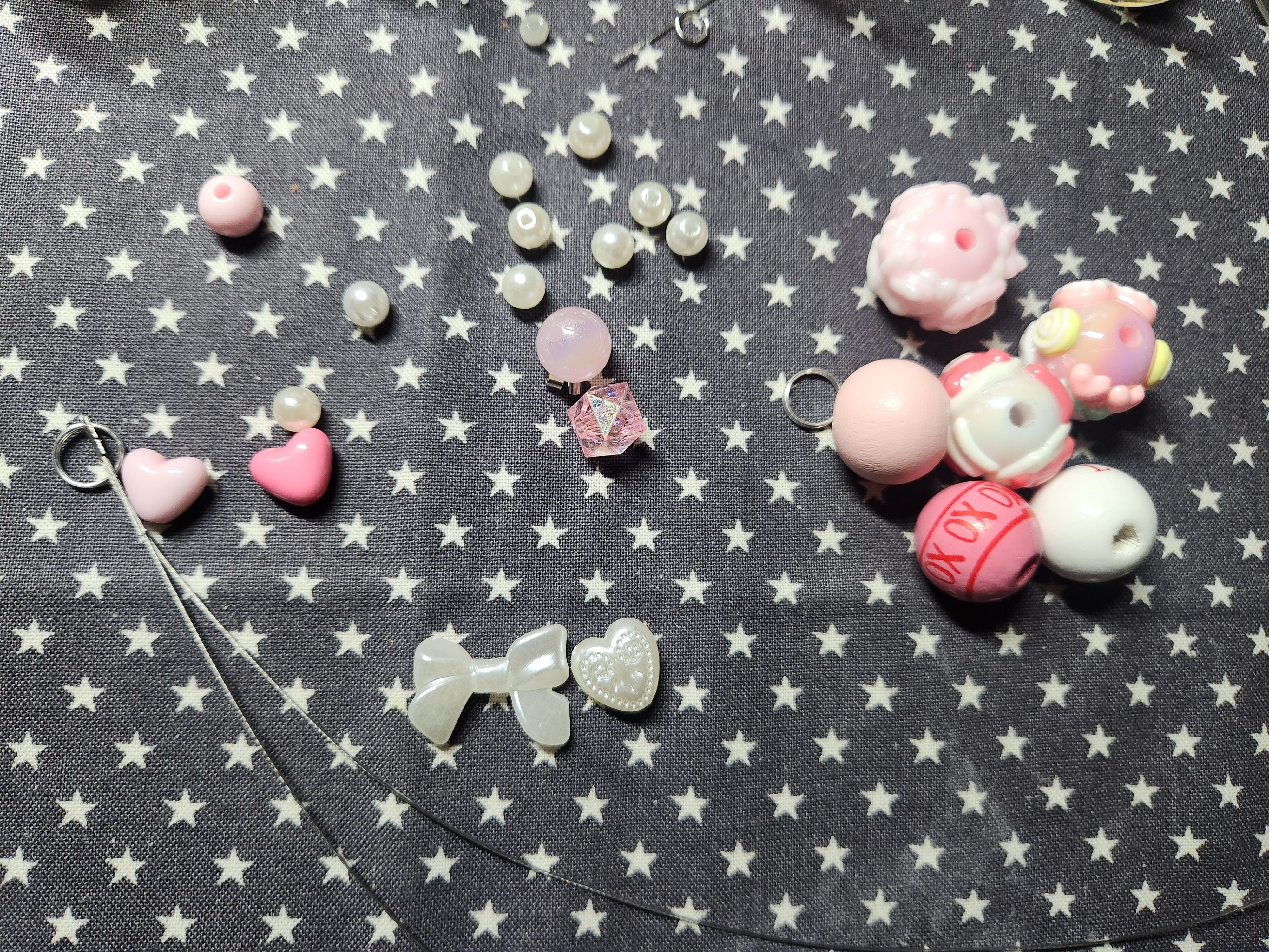 • 꽃 또는 구름 모양의 입체 비즈 (하단 핑크 오브제)